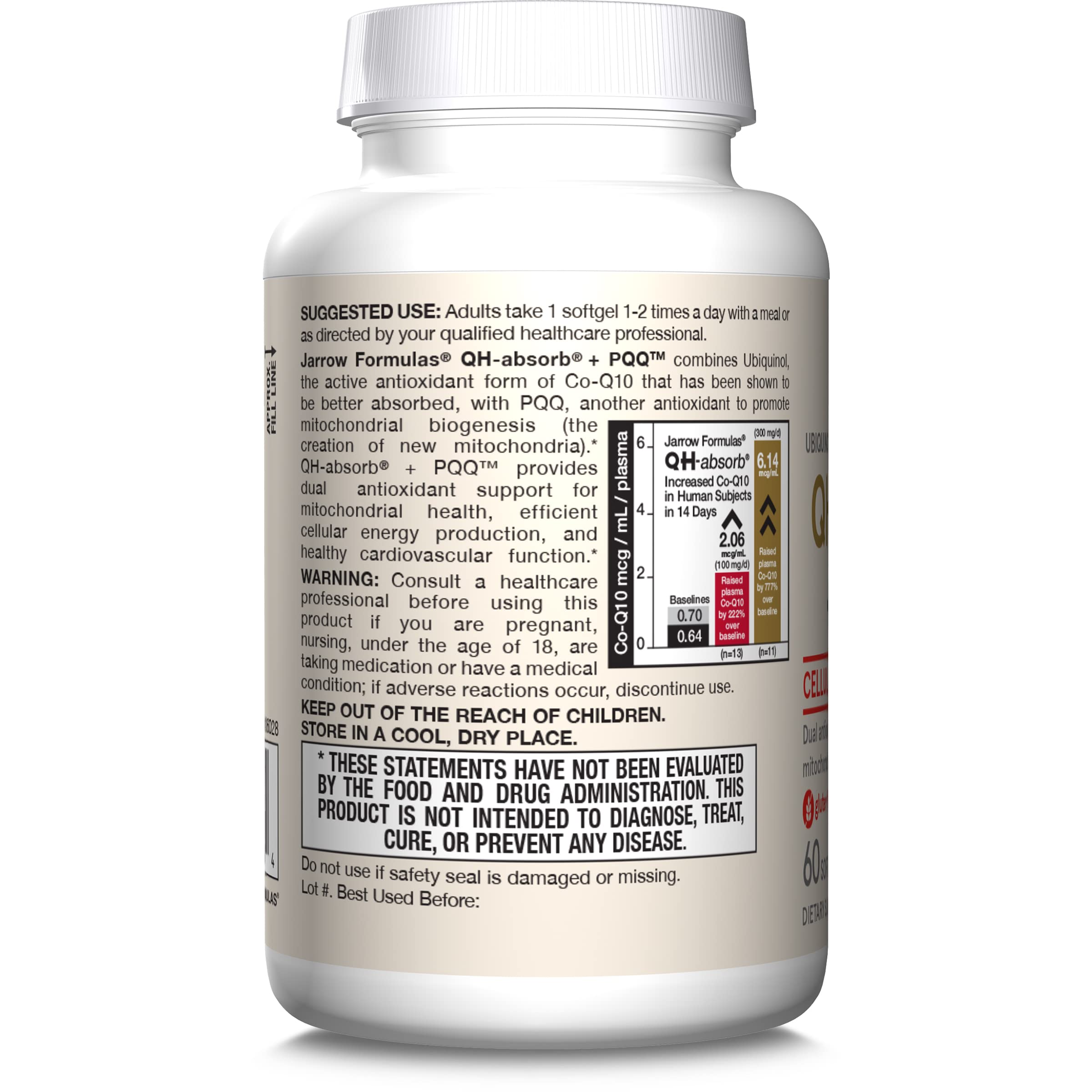 - PQQ & Ubiquinol Supplement: QH-absorb + PQQ combines the reduced, active, antioxidant form of Co-Q10 with PQQ, an antioxidant for mitochondria creation
